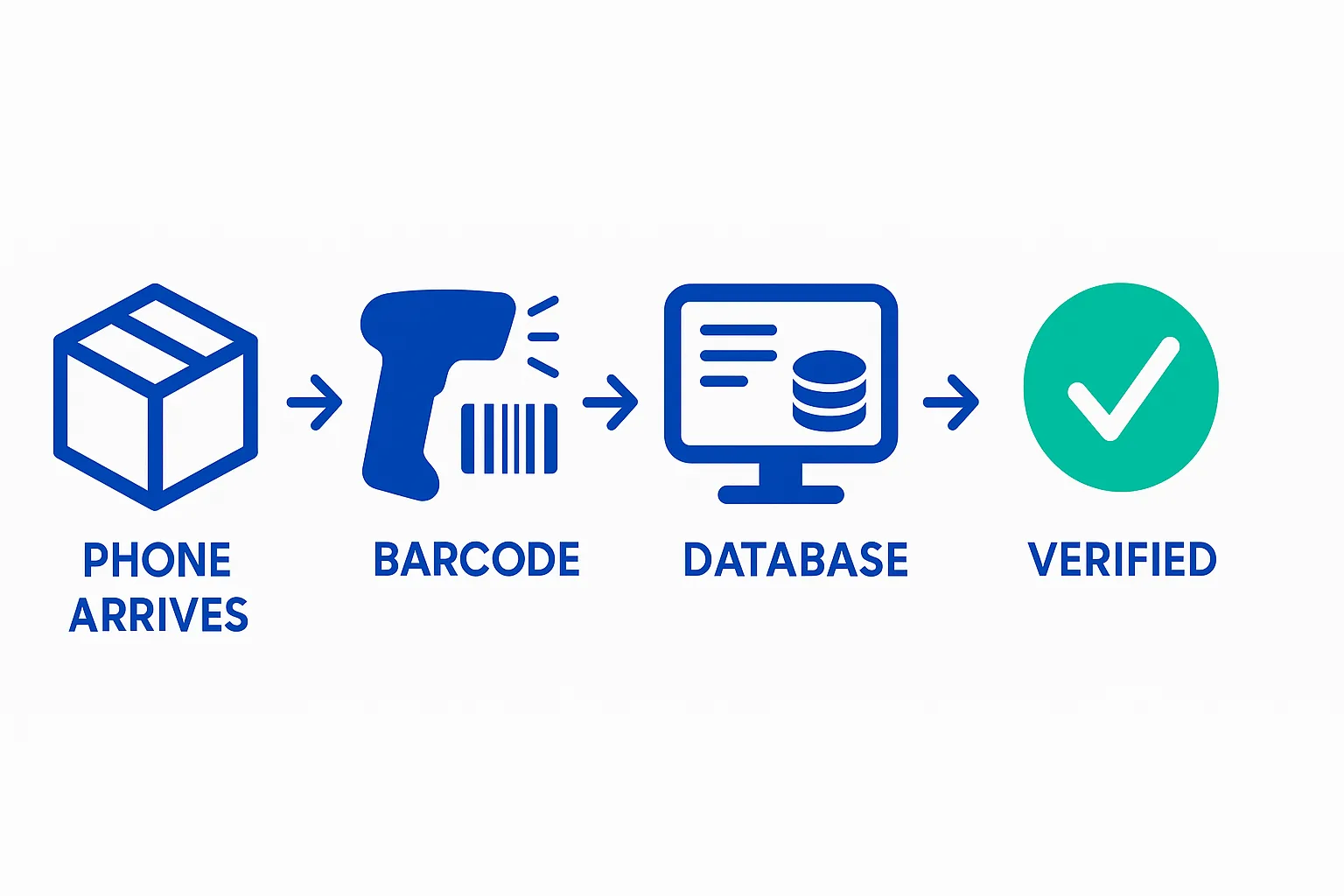 – Every phone’s unique serial number gets scanned on arrival